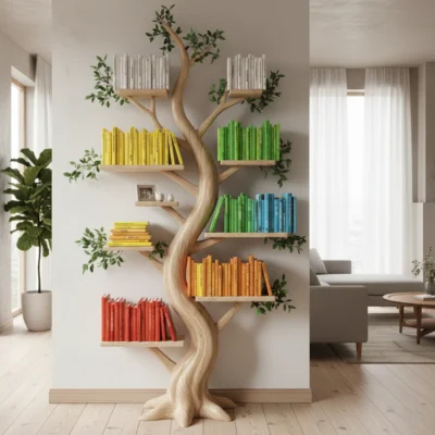 A tree-shaped bookcase is more than a clever way to store your books — it’s a canvas for self-expression. Its unique design invites you to move beyond the conventional, using books not just for function but as part of your home’s story and style. Whether you arrange by color, rotate themes by season, or blend in plants and personal mementos, every branch becomes an opportunity to reflect who you are.