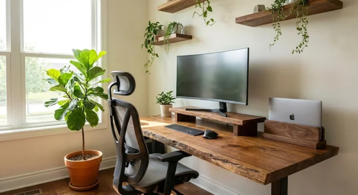 By using a desk organizer to elevate your monitor or tilt your tablet, you reduce neck strain. Integrating Biophilic Design—the connection to nature—is equally important. Combining the natural grain of a wood organizer with a small plant creates a “micro-oasis.” Studies show that having natural elements in your workspace can boost productivity by up to 15% and significantly reduce stress levels, which is vital for those long days of back-to-back AI-collaboration sessions.
