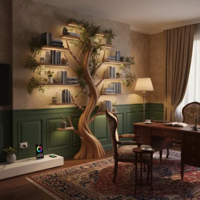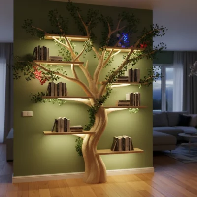 A tree-shaped bookshelf is already a statement piece but with the right lighting, it transforms into something truly special. Thoughtful illumination not only highlights the unique structure and details of the shelf but also enhances the atmosphere of the entire room. From subtle LED strips tucked along branches to smart lights that adapt to your mood or schedule, there are endless options to suit different styles, needs, and spaces.